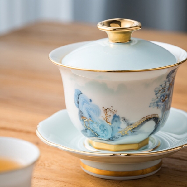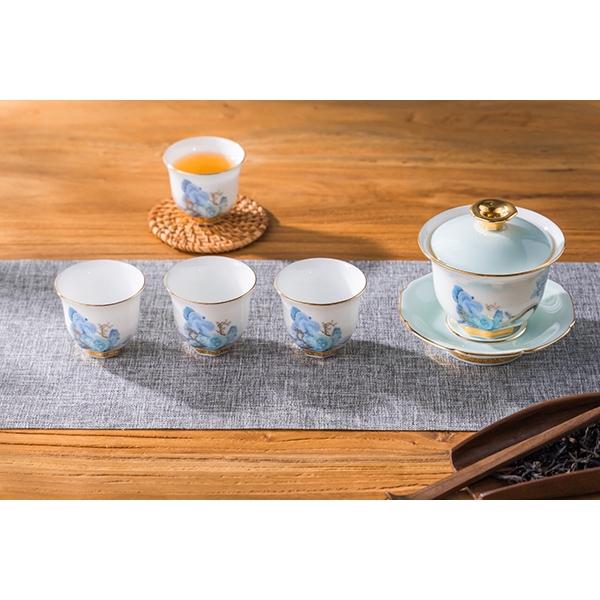 雲清千里描金骨瓷茶具7件組