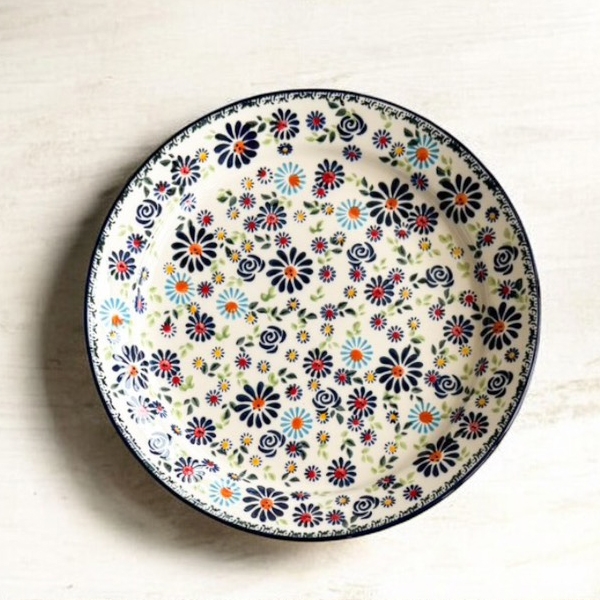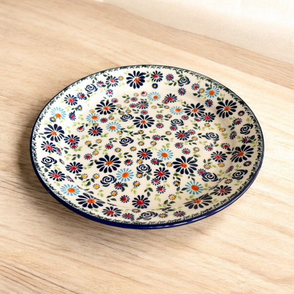 波蘭彩手繪藝術陶瓷-綠藍花語8.5吋圓盤