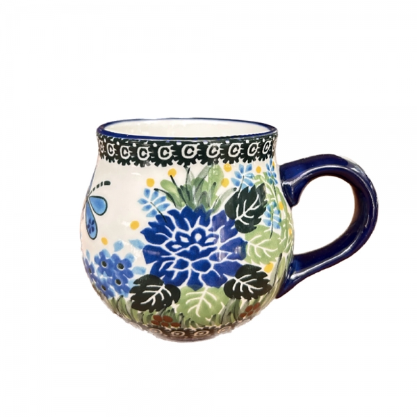 波蘭風手繪藝術陶瓷馬克杯-藍情花園