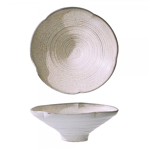 雅光白芝麻陶瓷系列8.5吋荷邊高腳碗