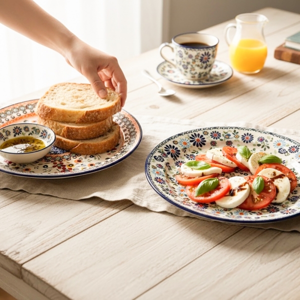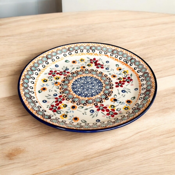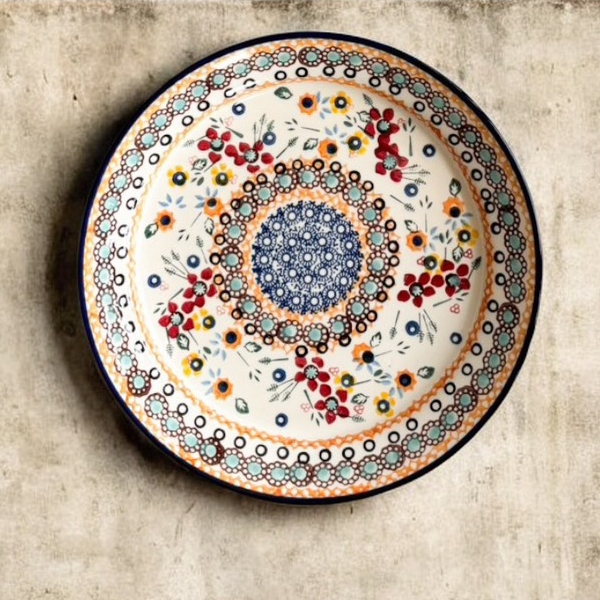 波蘭彩手繪藝術陶瓷-紅黃花語8.5吋圓盤